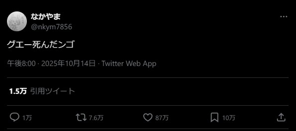 がんで亡くなった22歳大学生・なかやまが10月にXに投稿した「グエー死んだンゴ」の一文を機に研究団体や病院への寄付広がる 0件が1078件、数千万円規模