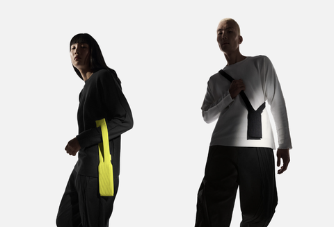 「iPhone Pocket」は、イッセイ ミヤケによるプリーツ素材に着想を得たリブ編みのオープン構造を持つニット製アイテム。オリジナルの3Dニット構造を採用し、「一枚の布」のコンセプトからインスピレーションを得たデザインが特徴という。