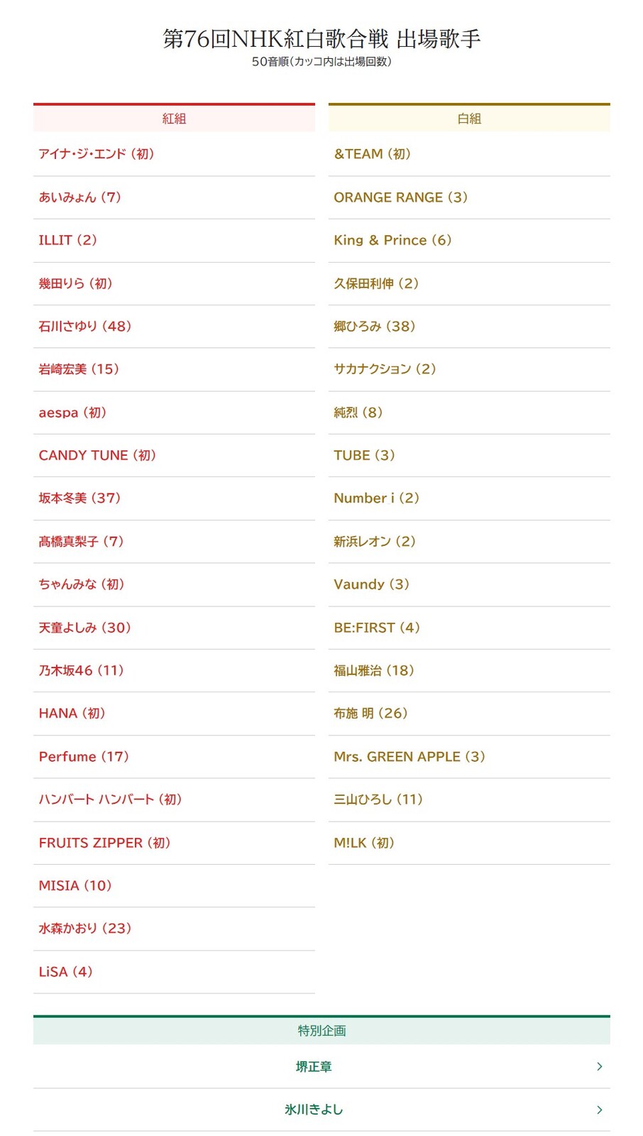 「第76回NHK紅白歌合戦」出場歌手が正式決定 「幾田りら」「ちゃんみな」「久保田利伸」など