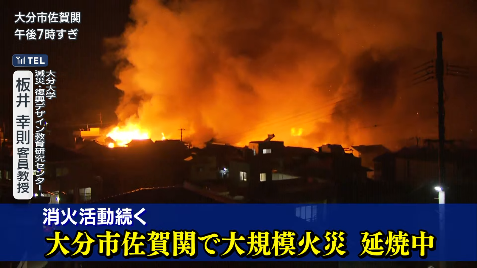 大分市佐賀関で大規模火災、山火事に発展か 鎮火のめど立たず、20棟以上燃える 現在も延焼中 周辺住民に避難呼びかけ