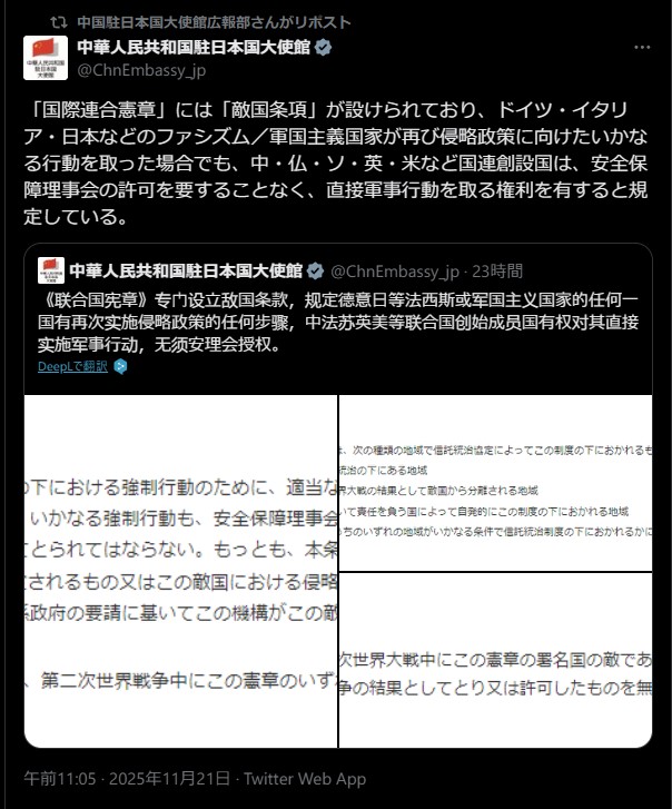 https://x.com/ChnEmbassy_jp/status/1991689268784410624