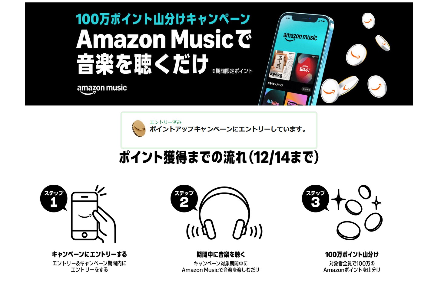 Amazon Musicで音楽を聴くだけ 100万ポイント山分けキャンペーン