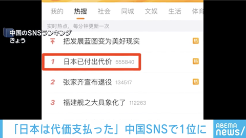 「日本はすでに代価を支払った」中国SNSで1位に