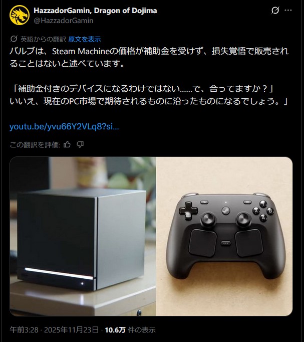【悲報】Valve「Steam Machineの価格は同じ性能のPCぐらい」