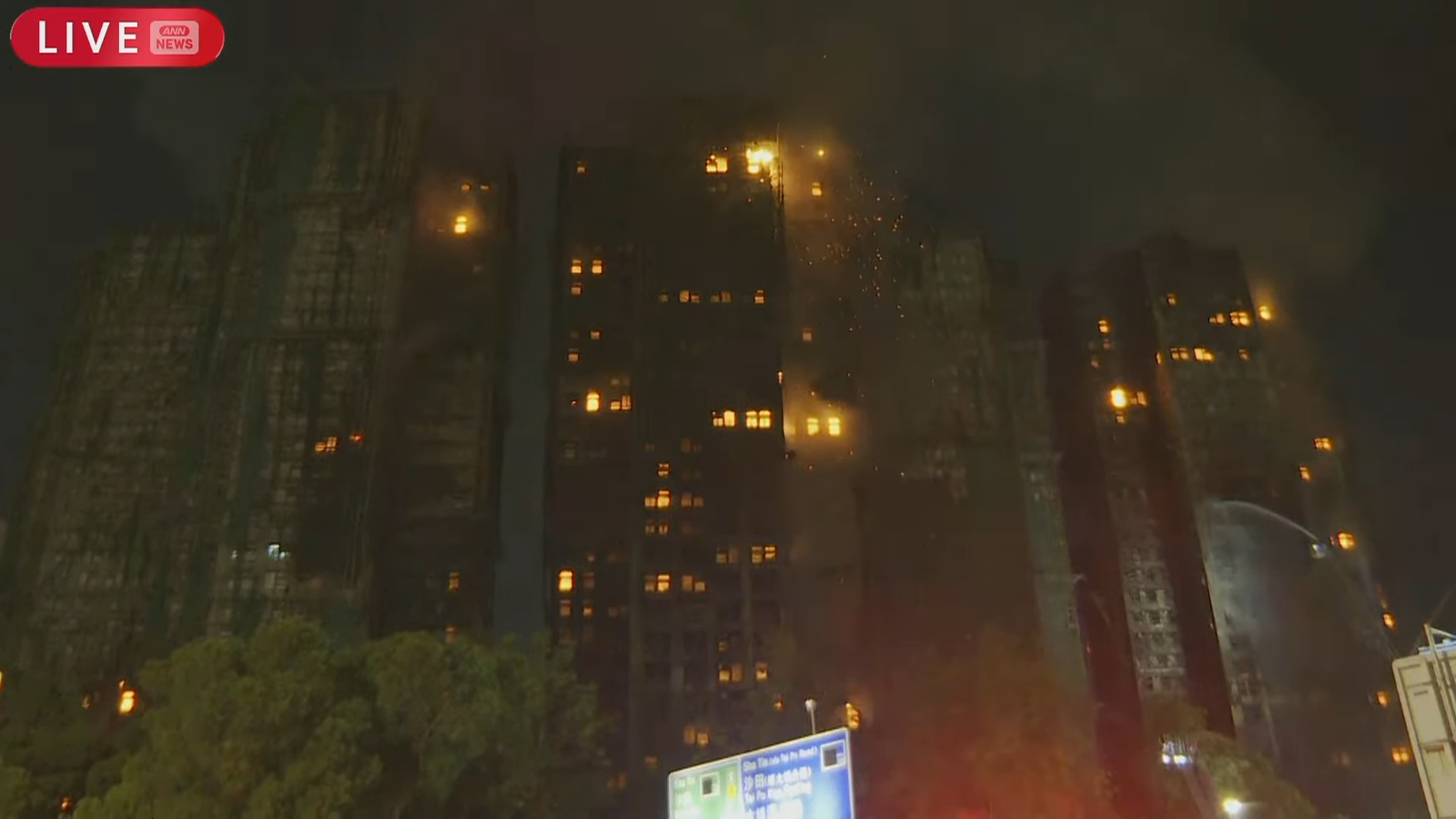 香港の高層マンション火災、36人死亡279人安否不明 2000戸の32階建て住宅7棟が延焼 補修工事の竹の足場から燃え移ったか