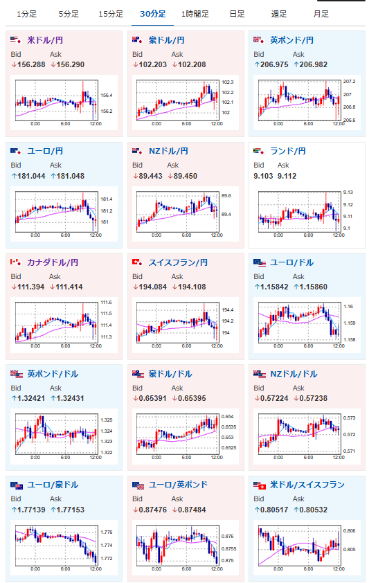 ・先日はNY市場が休場のため、あまり目立った動きなし