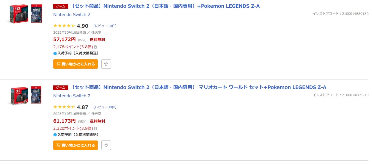 Switch2、楽天ブックスで普通に買える※ポケモンZAとの抱き合せ