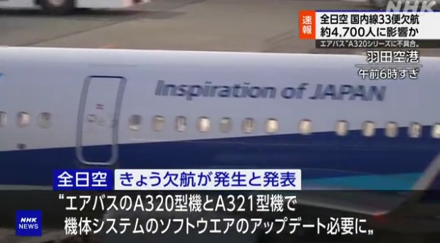 ANA、65便が急遽欠航 エアバスA320型機とA321型機に不具合でソフトウェアアップデート実施 全世界で6000機が影響か
