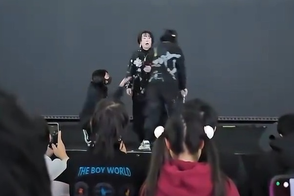 演者が歌ってる途中で政府の指示で「日本アーティストの演出は全面禁止」になり、強制中止→そのままスタッフに連れられて退場…。