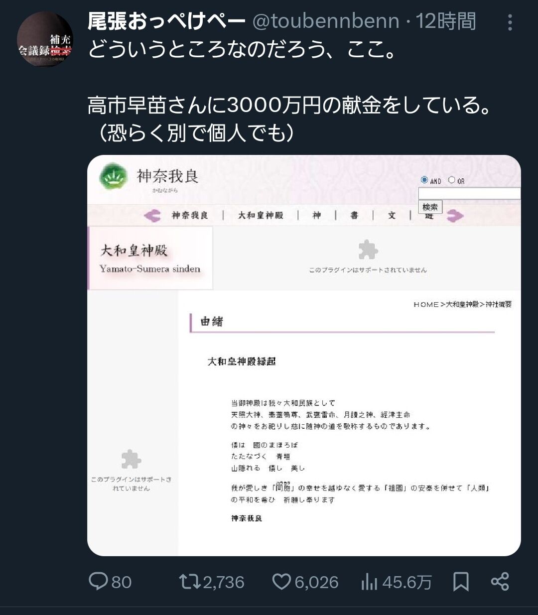 【朗報】高市早苗さんに3000万円寄付した団体がお前らの想像の100倍ぐらいヤバい。ありがとう自民党