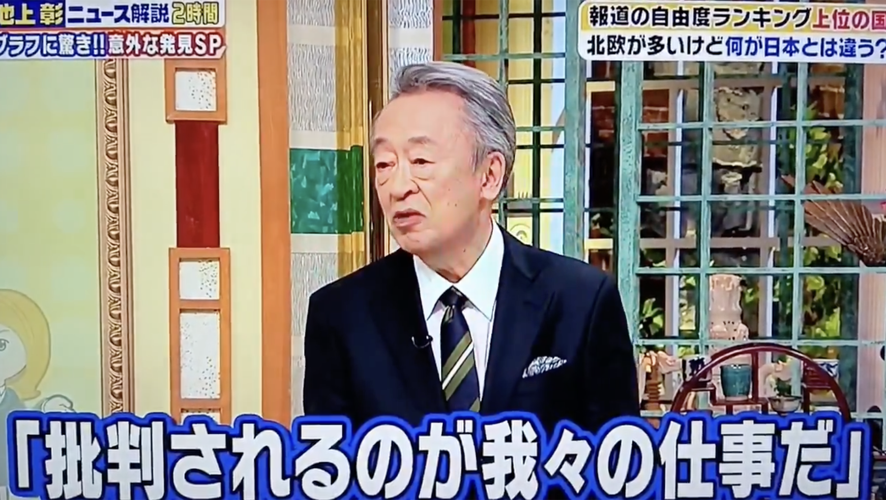 池上彰「報道の自由度が高い国は忖度しないからどんどん政府を批判する。政治家は受け入れる。それに対して怒ったり弾圧はしない」
