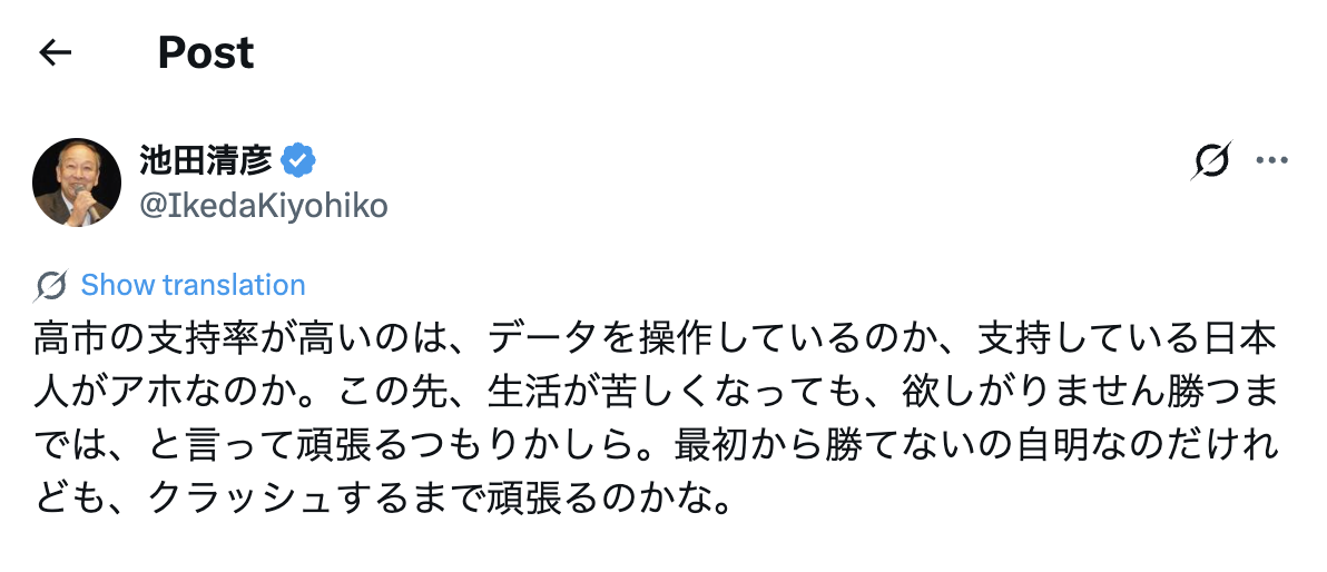 — 池田清彦 (@IkedaKiyohiko) December 7, 2025