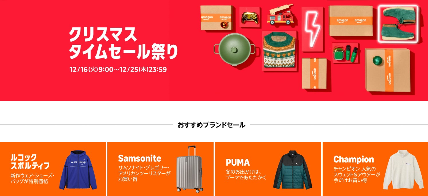Amazon、みなさんお待ちかね「クリスマスタイムセール祭り」を16日9時から開催