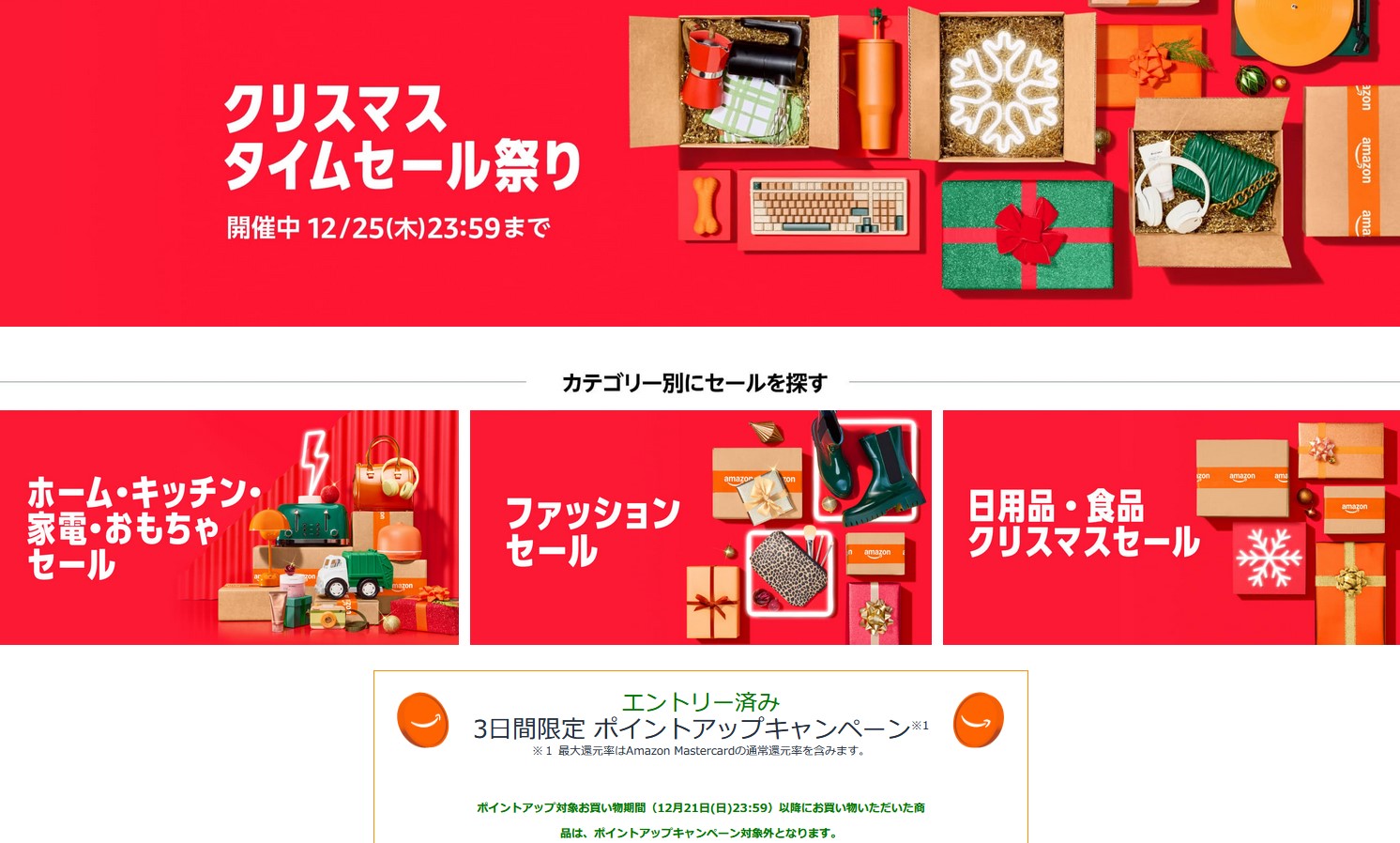 Amazonクリスマスタイムセール祭り、3日間限定ポイントアップキャンペーンを開始 おせちの投げ売りも開始