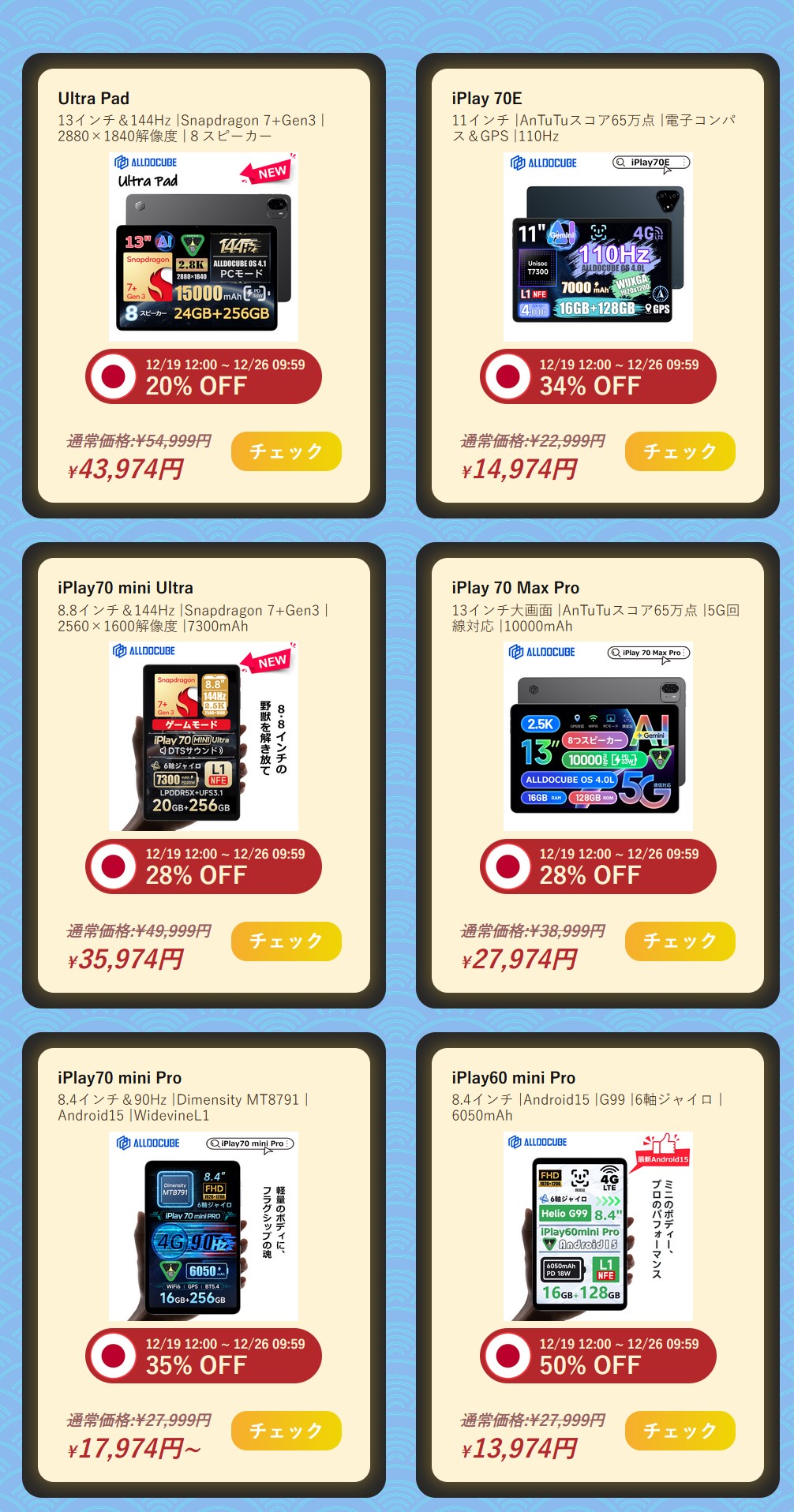 T7300搭載の11インチタブレット「iPlay 70E」、クーポン併用で1万4974円に