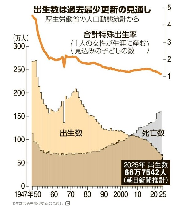 日本の2025年の出生数66万8000人程度で過去最少更新か ヤバすぎだろ