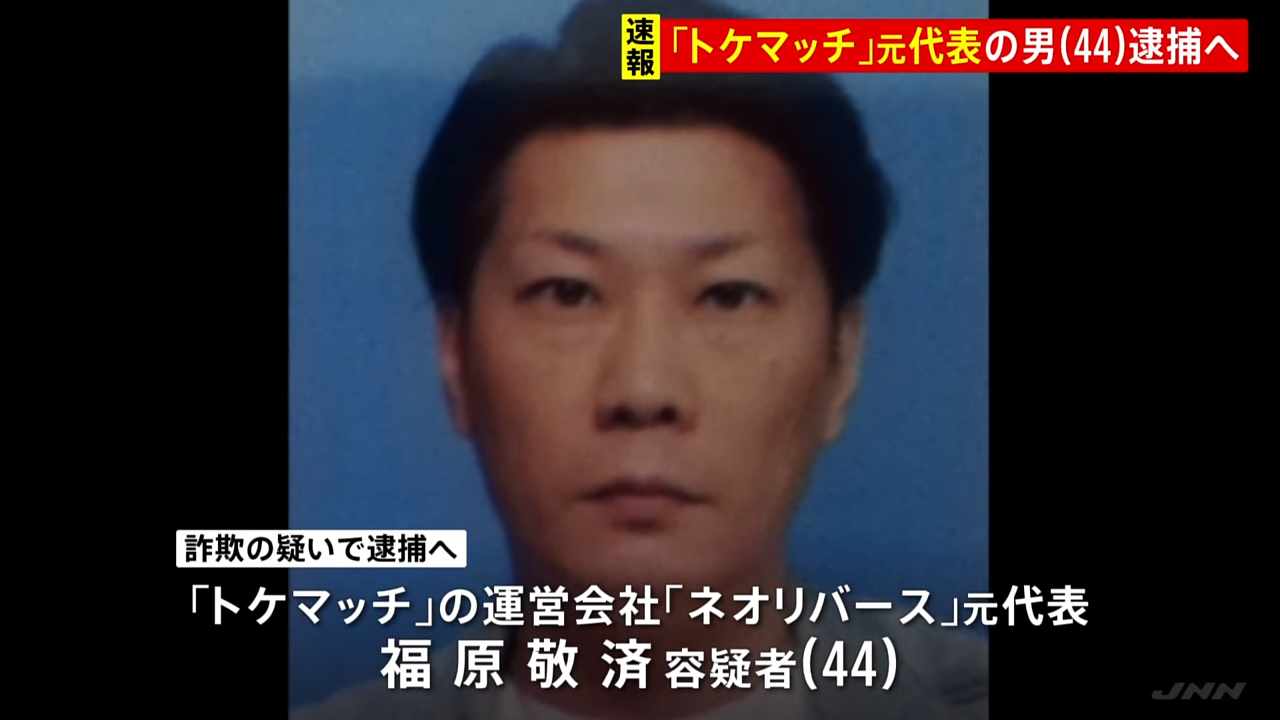 国外逃亡していた「トケマッチ」運営会社の元代表の福原敬済を逮捕へ UAEの現地当局に拘束され帰国