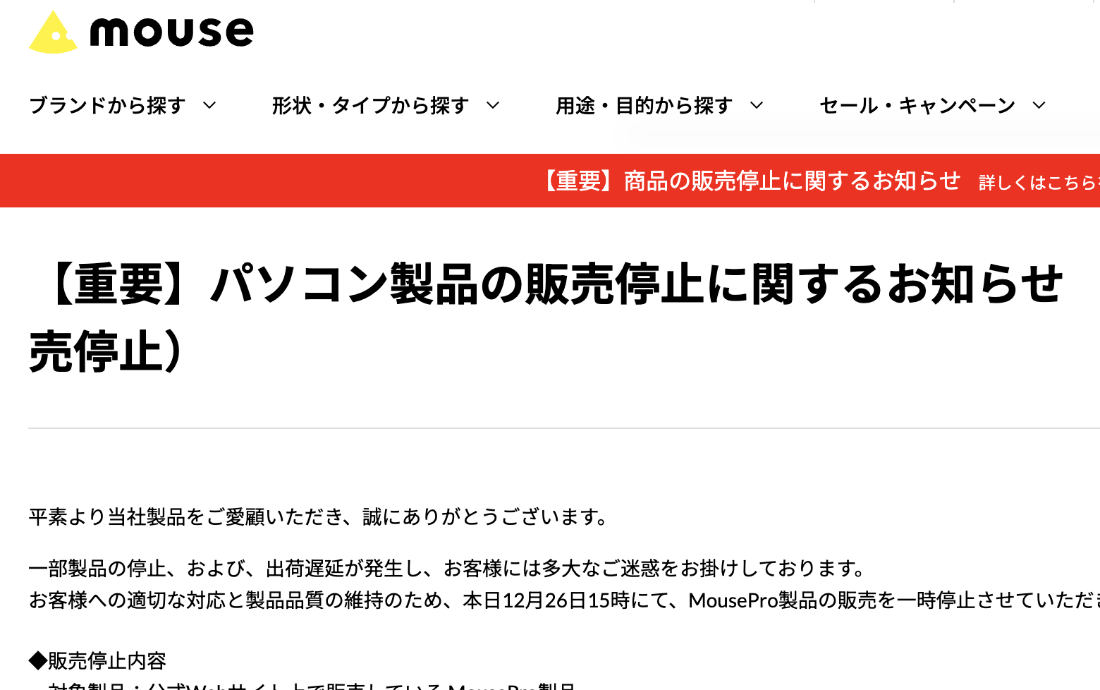 【悲報】マウスコンピューター、PC販売停止を発表。メモリ不足で