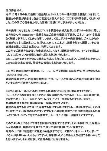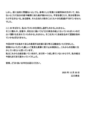 【悲報】トレパク疑惑の江口寿史さん、ついに長い沈黙を破り長文でお気持ち表明