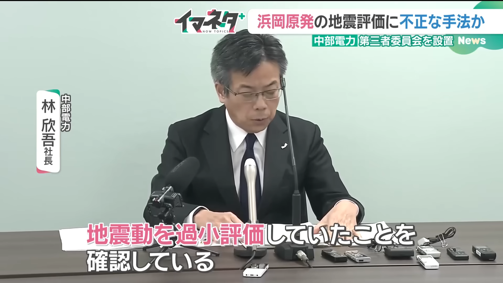 中部電力社長、原子力部門「解体的な再構築」 浜岡の地震評価不正