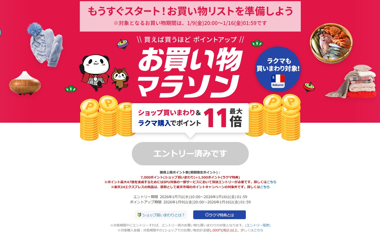 楽天市場、2026年最初の「お買い物マラソン」を9日20時から開催
