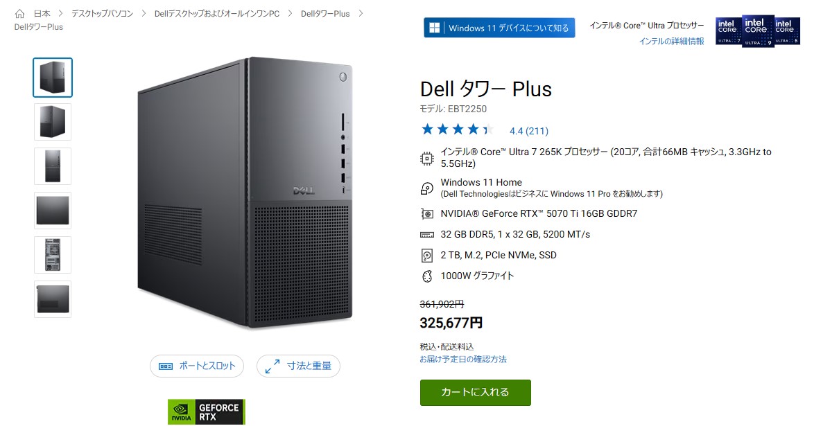 デルのこのPCどう?先輩方の評価をお願いします 265K/5070Ti/メモリ32GB/SSD2TB搭載で32万5677円
