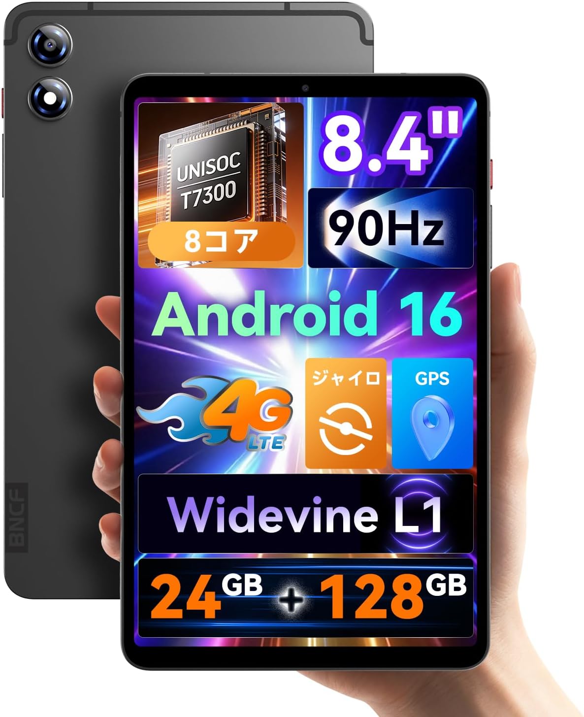 BNCF タブレット 8インチ Android 16、Unisoc T7300、8コア、24GB+128GB+1TB拡張、8.4″ FHD IPS 1920×1200、90Hz高リフレッシュレート、Widevine L1、8MP+13MP、4G LTE+5G Wi-Fi+BT 5.4+GPS+ジャイロ、5500mah、Bpad T1