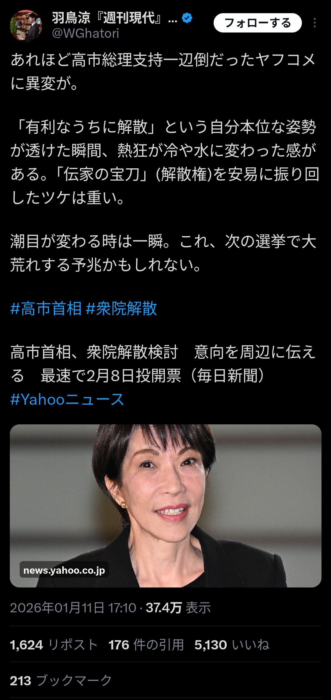 【朗報】ヤフコメ、高市早苗批判に転向