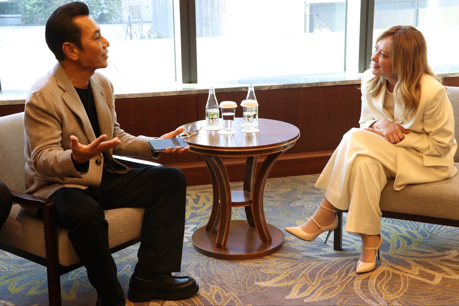 イタリアのメローニ首相、大ファンの『北斗の拳』原哲夫と面会で握手 版画に笑顔