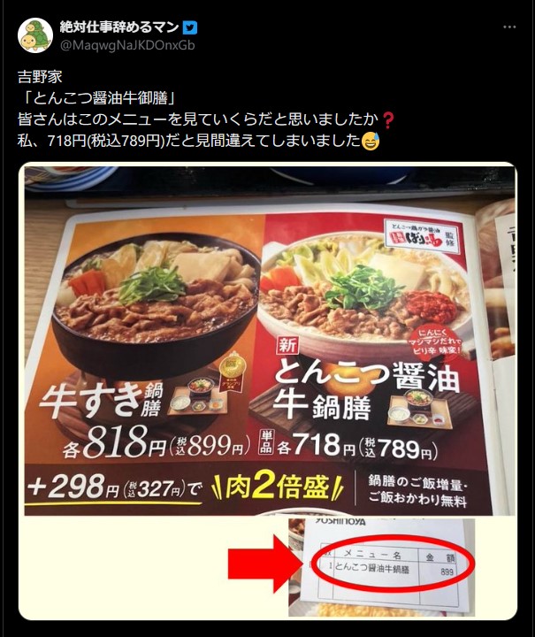 吉野家の「とんこつ醤油牛御膳」の価格表記に「ミスリード」指摘続々 吉野家は謝罪&デザイン再検討