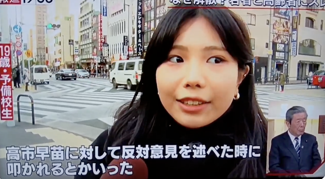 19歳予備校生「ネットとかSNSでは『早苗ちゃん』とか言って総理大臣が『推し化』されてるような気がして、高市早苗に対して反対意見を述べた時に叩かれるといった社会の風潮ができてて『少し怖いな』と思ってます」