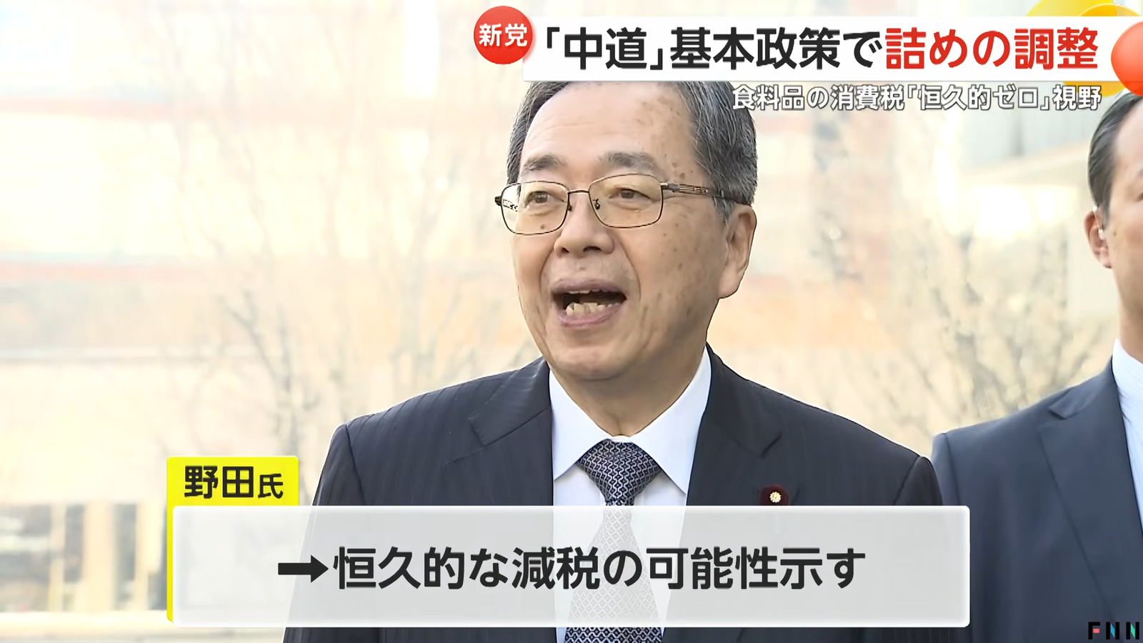 中道改革連合、食料品の消費税を恒久的ゼロの方針
