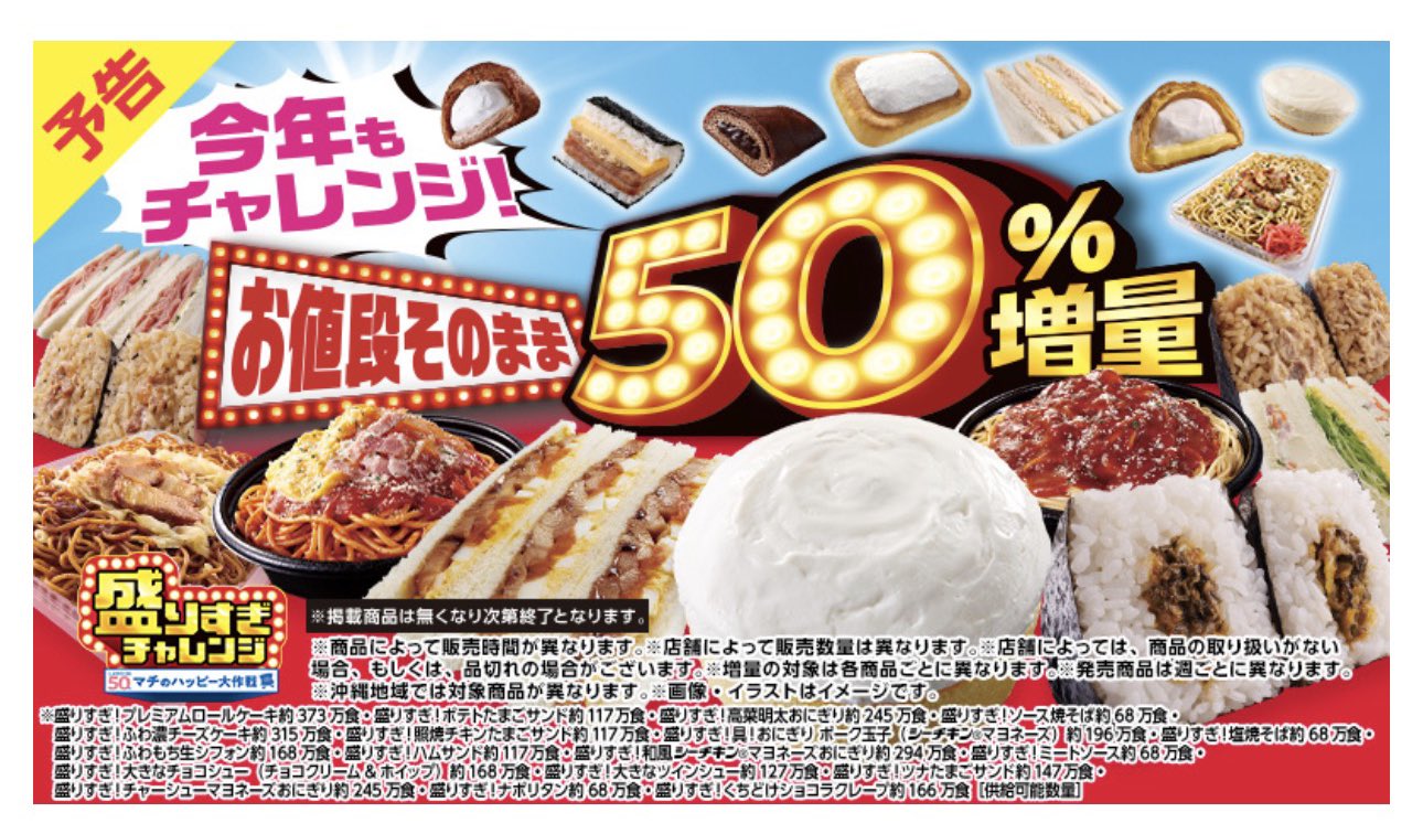 【朗報】ローソン、1月26日から「約50%増量 盛りすぎチャレンジ」を実施