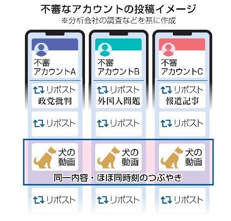 X、70アカウントが組織的拡散 特徴共通、世論介入か