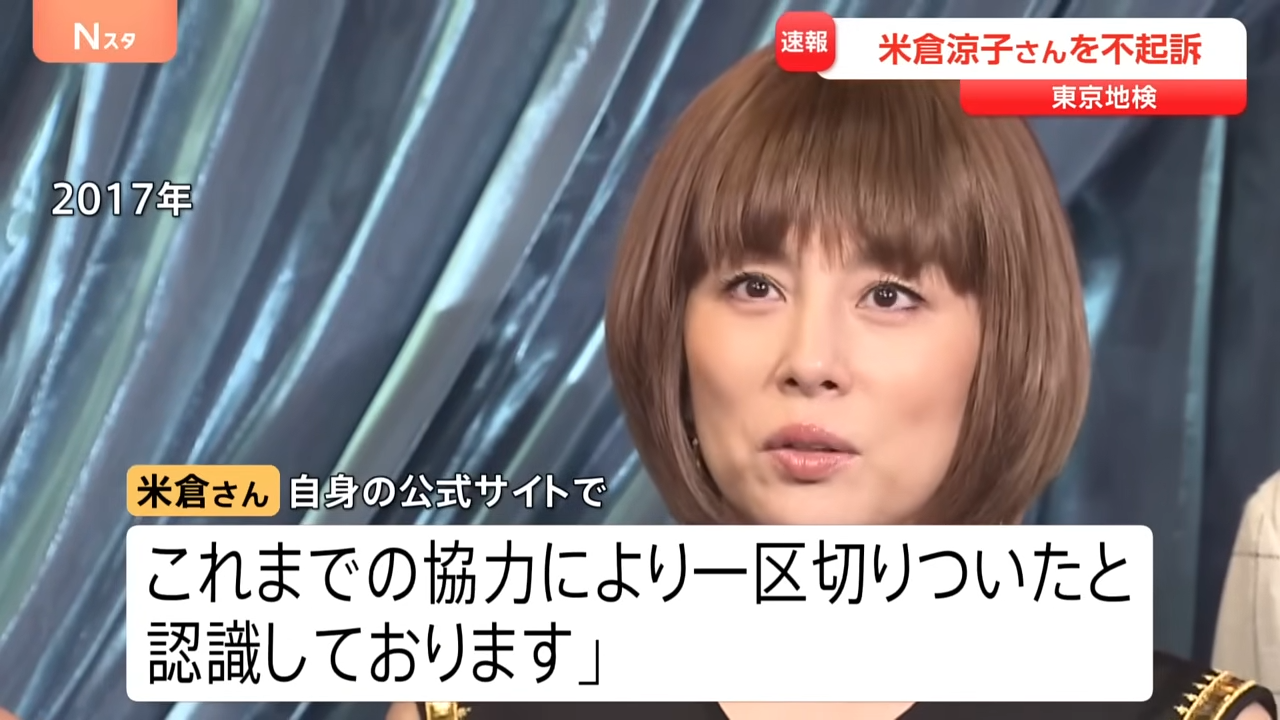 麻薬取締法違反容疑で書類送検された米倉涼子さん、不起訴
