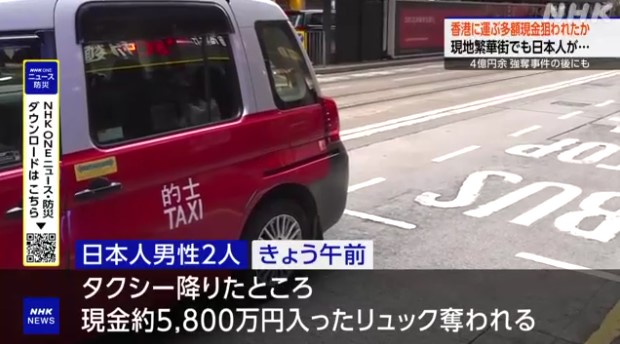 香港で日本人2人が5800万円を奪われる 先月も10億円が強奪