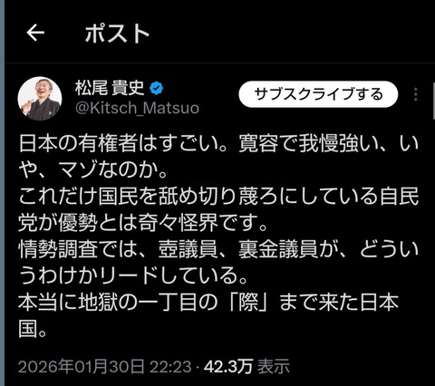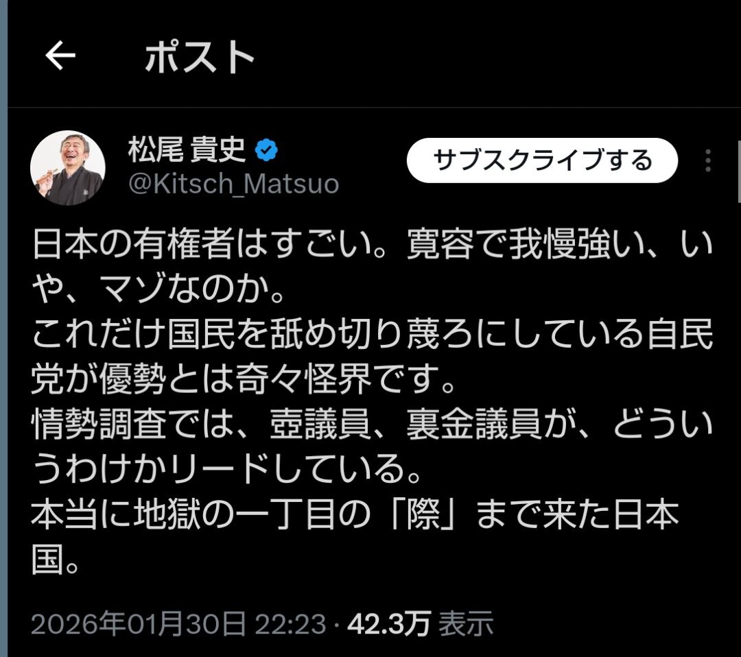 「俺様は愚か極まる日本人有権者とその未来を嘆く事が出来る知性に溢れてるんだぜアピール」