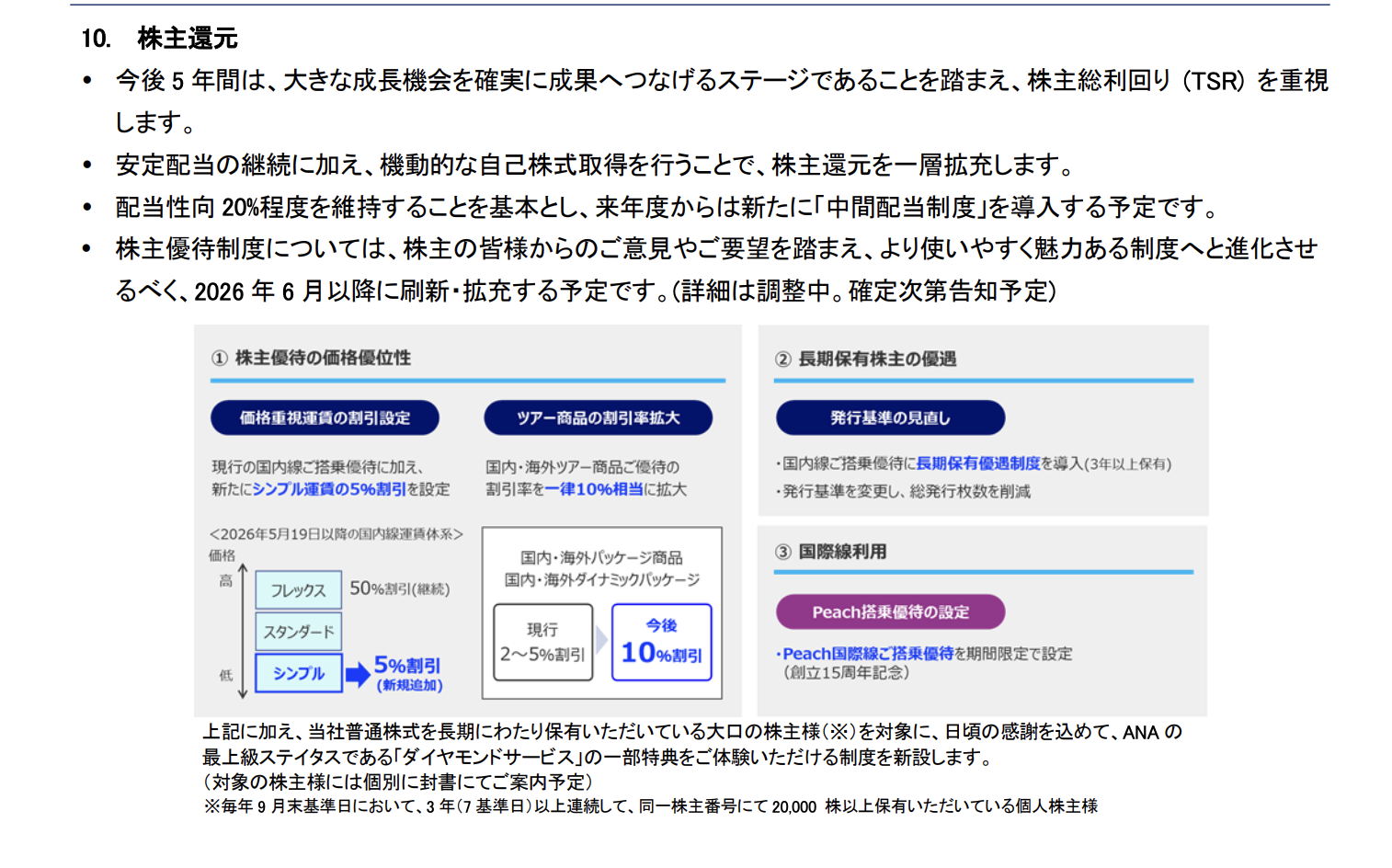 上記に加え、当社普通株式を長期にわたり保有いただいている大口の株主様(※)を対象に、日頃の感謝を込めて、ANA の