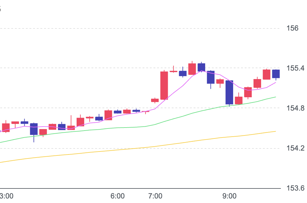 2日朝の東京外国為替市場のドルの対円相場(気配値)は、次の米連邦準備制度理事会(FRB)議長にタカ派とされるウォーシュ元FRB理事が指名されたことから、1ドル=155円台前半に上昇している。午前9時現在、155円19~21銭と前週末(午後5時、153円79~81銭)比1円40銭の大幅ドル高・円安。