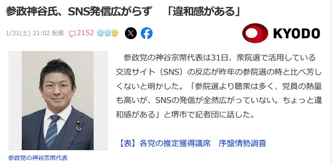 参政神谷氏、SNS発信広がらず 「違和感がある」
