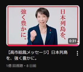 【朗報】自民党・高市総理のYouTube動画、あっという間に1億回再生突破 日本最速記録