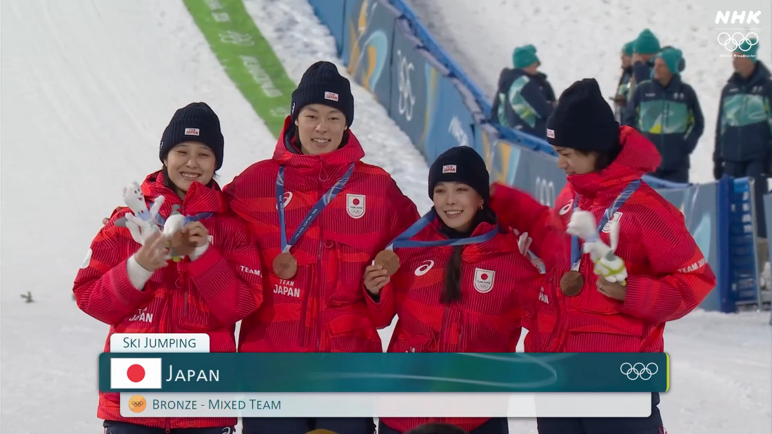 【ジャンプ】日本が混合団体で初の銅メダル 前回の北京五輪は4位 高梨沙羅の失格で涙から4年