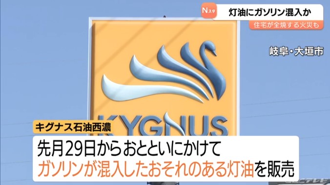 岐阜・大垣市のガソリンスタンド「キグナス石油西濃」、灯油にガソリン混入か 住宅が全焼する火事の火元となったファンヒーターの灯油にガソリンが含まれていたことが判明