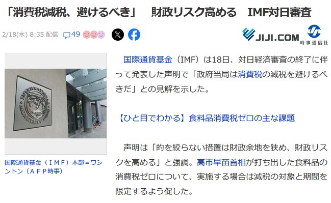 IMF対日審査「日本政府は消費税の減税を避けるべきだ」