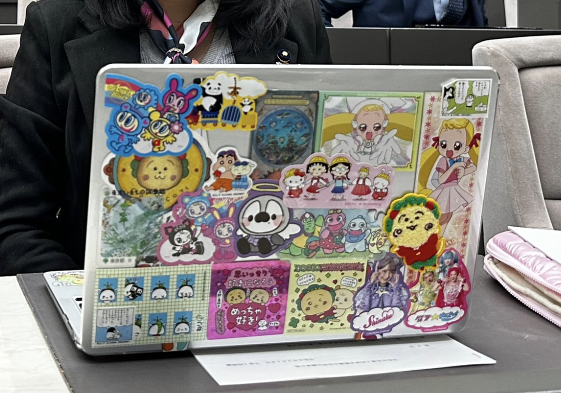 【爆笑】国民民主党の都議会議員さん、ノートPCにシール貼りすぎて炎上wwwww