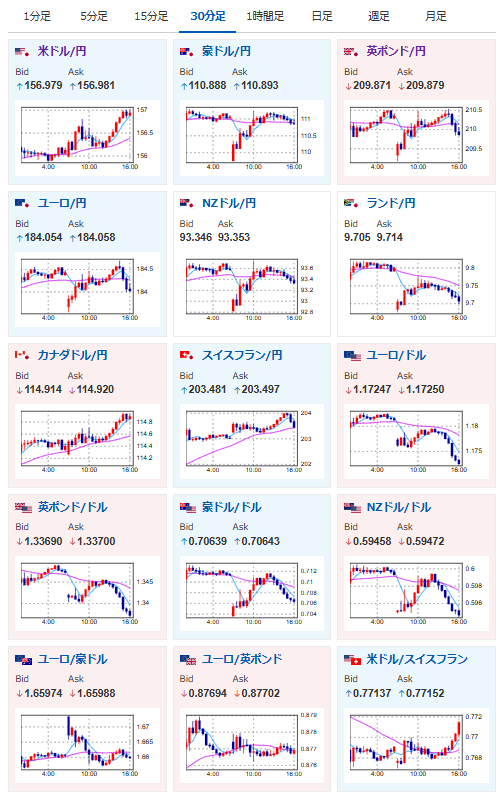 ドル円は先ほど1ドル157円にタッチ。