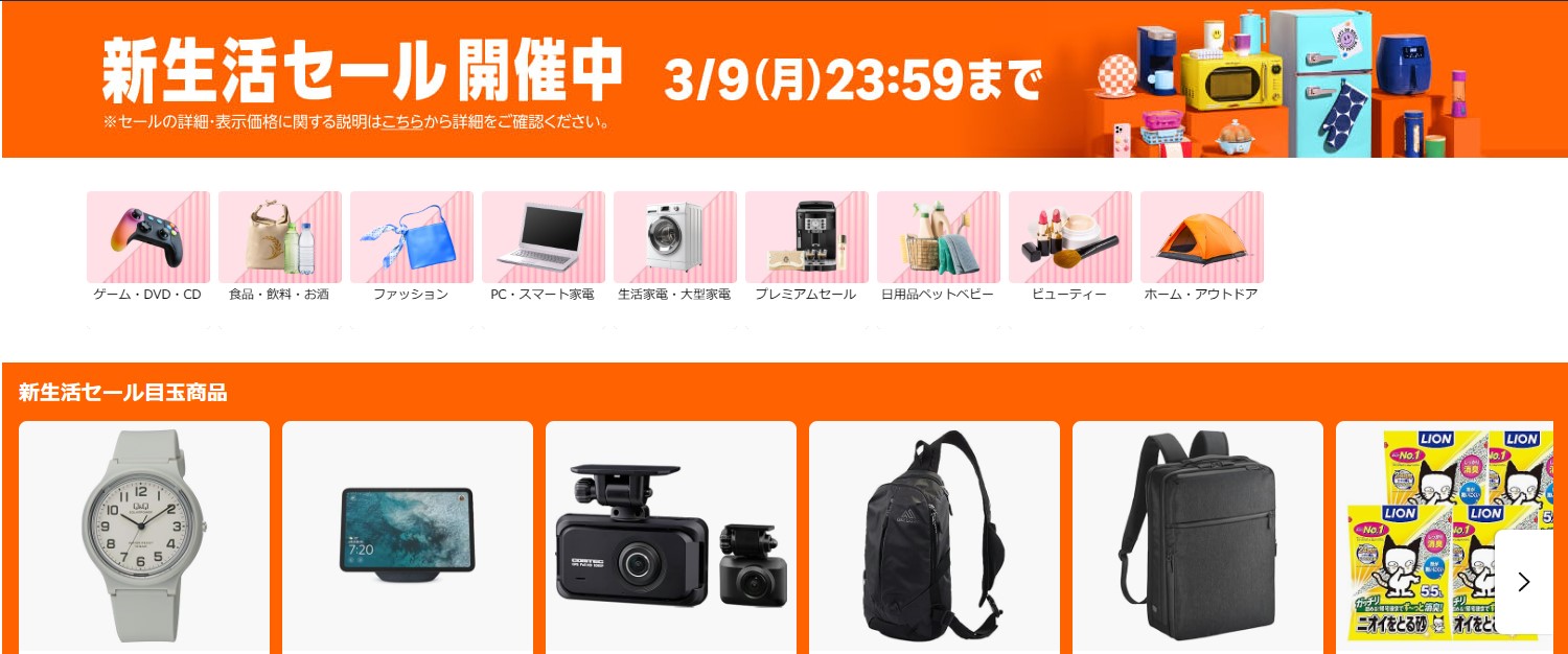 Amazon 新生活セール(3/6~3/9)