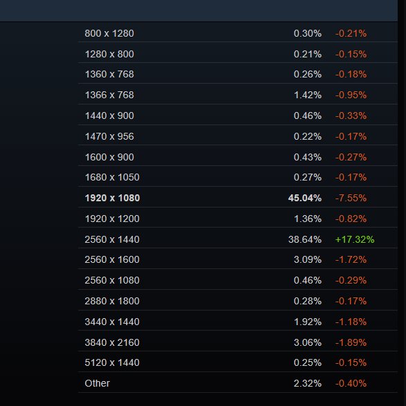 そしてすごく増えてるのがWQHD…というかWQHD以外が軒並み減少してるし4Kすらも減少かぁ。