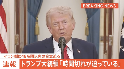 【悲報】トランプ、イランに最終警告「あらゆる地獄が降り注ぐまであと48時間。ホルムズ海峡開放か選択せよ」