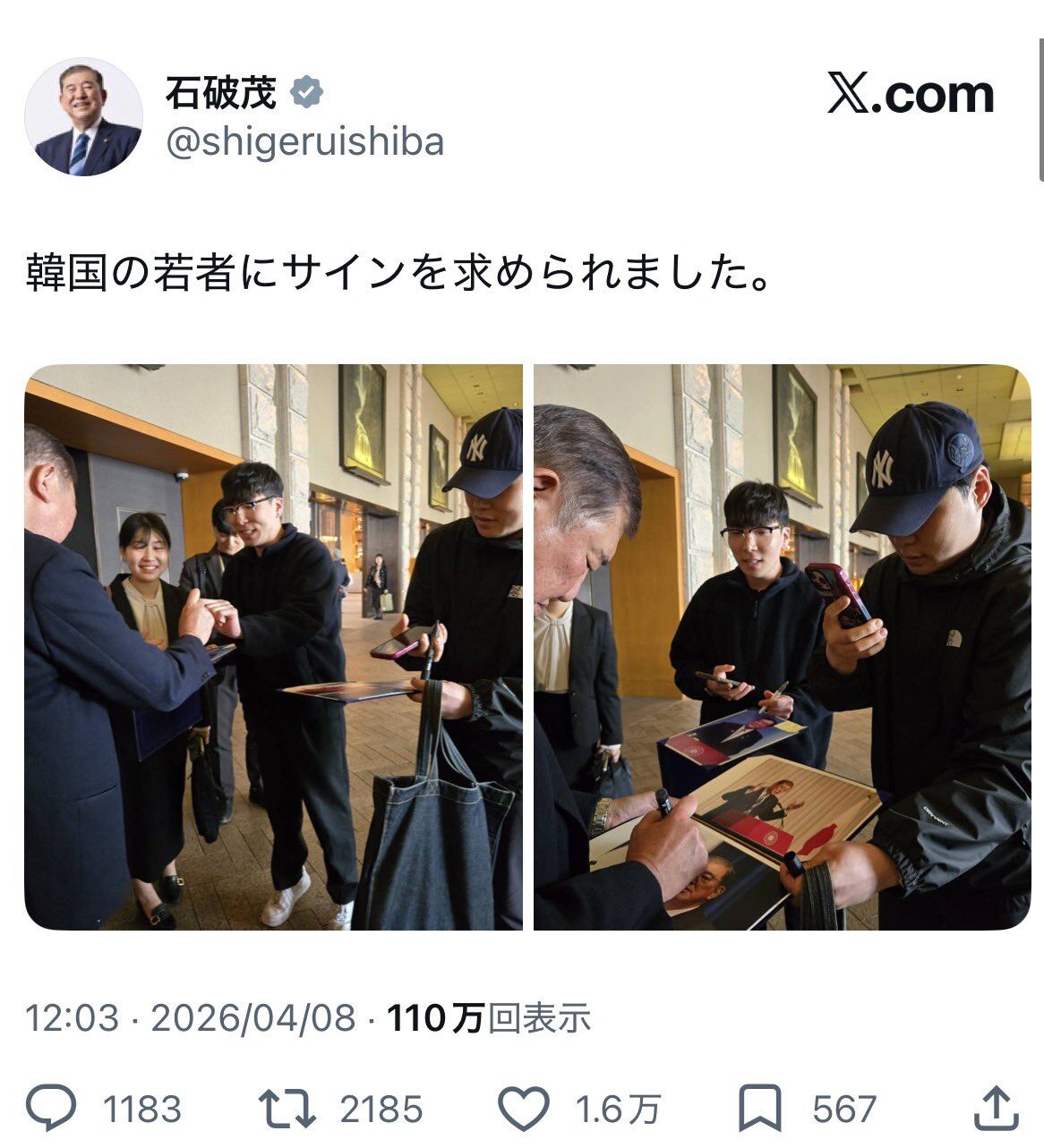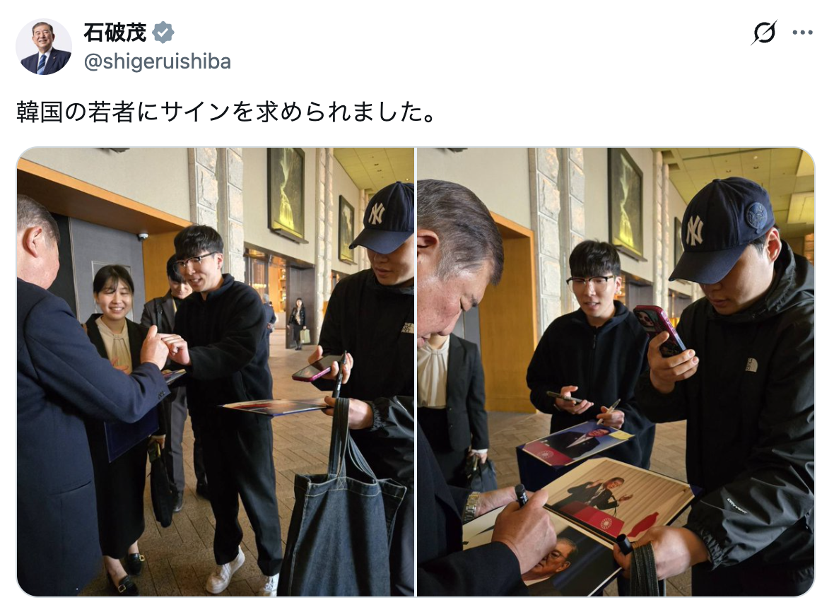 【朗報】石破茂「韓国の若者にサインを求められました」